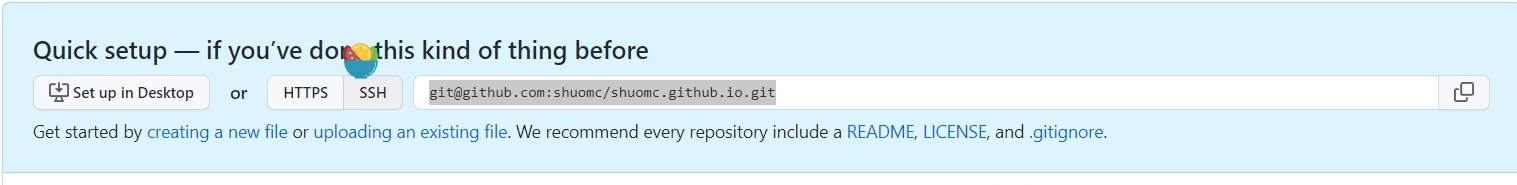 正确创建后在跳转的页面可以看到有HTTPS和SSH链接,我们选择SSH