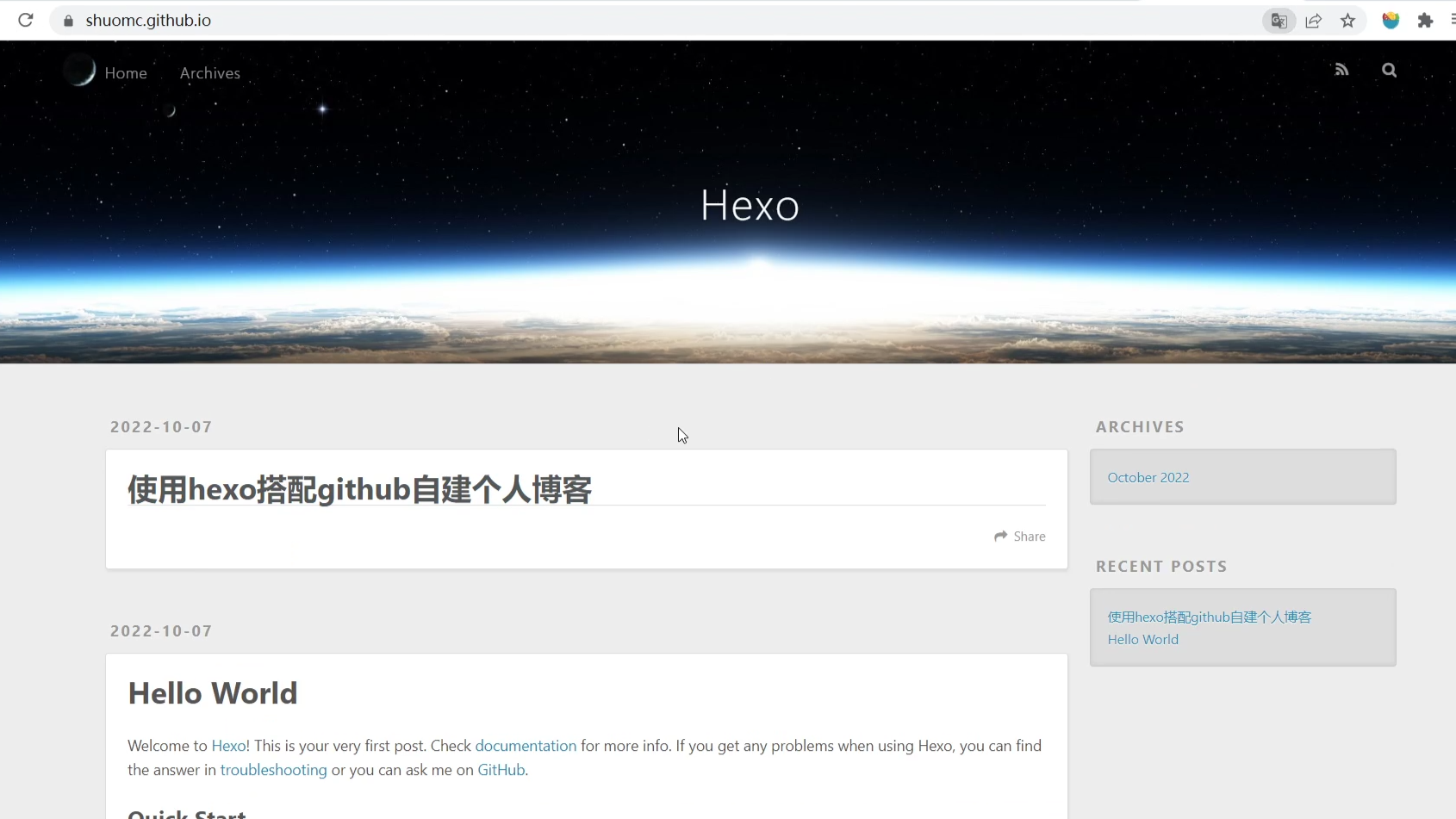 恭喜!你成功搭建了你的个人博客!